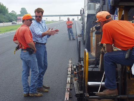 在美國伊利諾州的Thornton是世界最大的露天採石廠之一,該礦區在一般的營建尖峰季節其每天的船運出口量高達5萬噸之多。從礦區到港口這段卡車運輸過程會經過唯一的一條行駛道路與十字路口(Margaret and Williams Streets),並在該十字路口進行煞車停等、轉彎迴轉等動作。為解決該十字路口高破壞性的問題利用石膠泥瀝青鋪面搭配高強度性能的轉爐石粒料能夠克服。