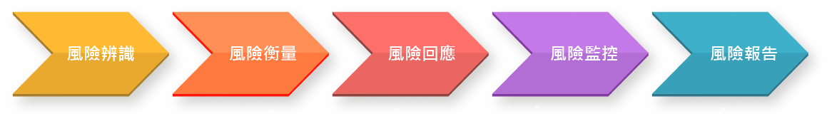 中聯資源之風險管理程序包括風險辨識、風險衡量、風險回應、風險監控及風險報告。其管理程序,如下圖所示: