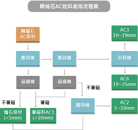 轉爐石為一貫作業煉鋼廠之轉爐煉鋼之副產品,其主要化學 成分為CaO、SiO2、Al2O3、Fe2O3 等,高溫液態熔融爐渣 經降溫成固體,再經製程加工破碎、磁選與過篩所產出。