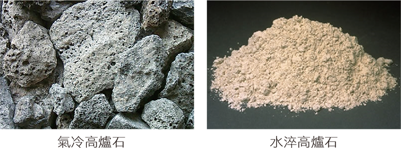 鐵水高爐冶煉製程中,由鐵礦、石灰石、焦炭及助熔劑產生的熔融爐石,經空氣自然冷卻即是氣冷高爐石;以高壓水淬驟冷即是水淬高爐石。