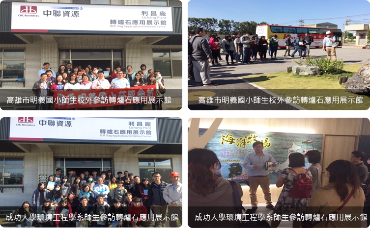 從轉爐石的誕生、加工生產,到國內外多元應用,展示區有轉爐石應用成品如:消波塊、人工魚礁等水利工程應用產品;停車場鋪設高速公路等級的透水瀝青及環境友善的高壓透水磚,足證轉爐石是環境友善產品,故持續辦理環境教育實施計畫及大專院校師生參訪,增進民眾對轉爐石的認識,截至2020年參展人數已累計達1300人。