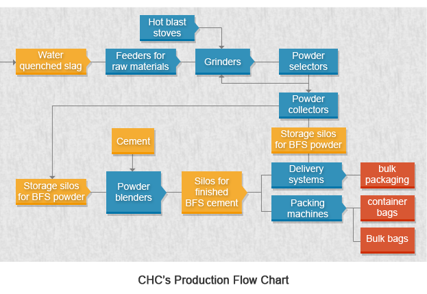 In general engineering construction, GBFS cement can replace Portland cement in making concrete. If high strength, durability, impermeability, and/or salt tolerance are required in concrete, GBFS cement has better performance than Portland cement. CHC Resources Corporation is the largest domestic producer of BFS powder and GBFS cement and can offer different types of GBFS cement according to the demands and engineering performance requirements of customers.