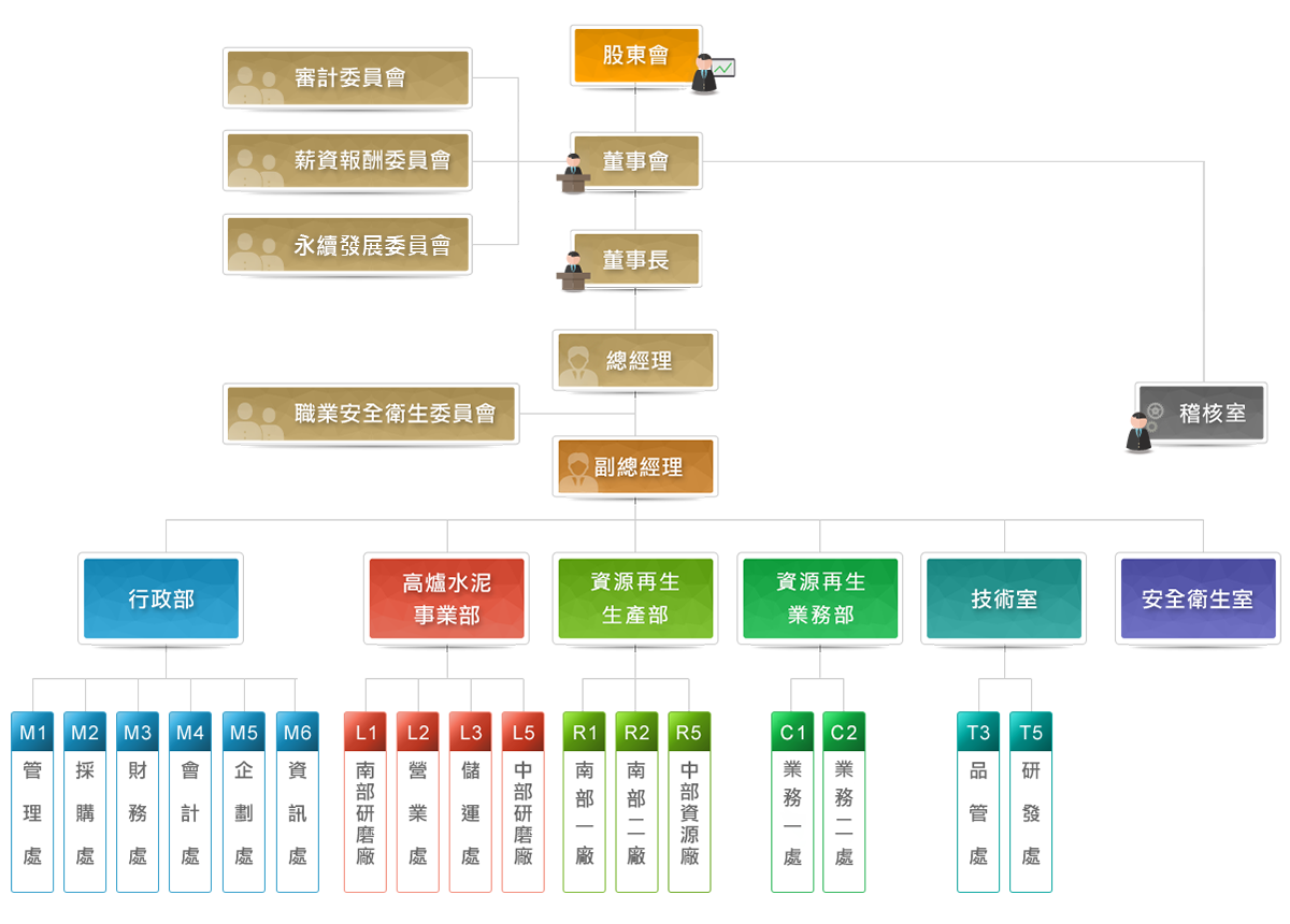主管爐石粉類產品製造、設備修護、工程擴建、生產品質管制、營業及儲運之計劃、執行及督導事項。