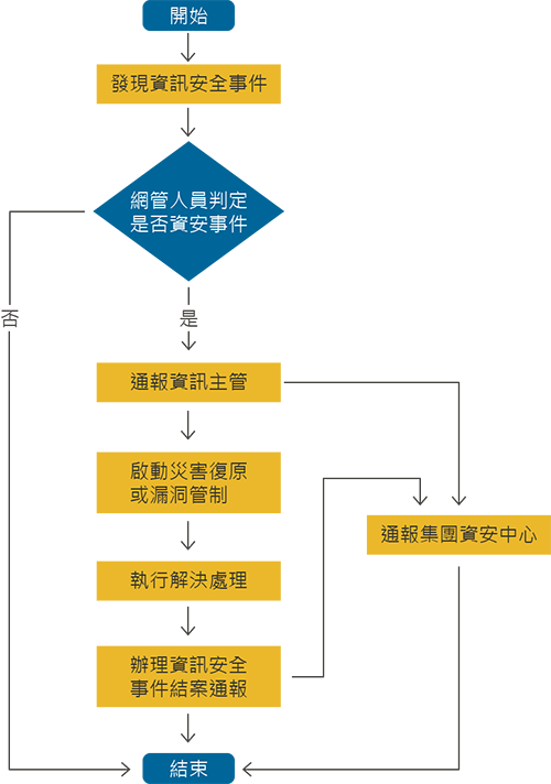 - 網路活動皆透過集團資安中心24小時持續偵測,針對重大資安風險立即進行處理,每月集團提供中低風險資安事件進行改善。