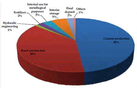 煉鋼爐渣(轉爐石)主要為煉鋼煉鐵製程的副產物,由於近年來環保意識抬頭與資源再利用的政策下,鋼鐵業對煉鋼爐渣回收與資源化的研究不斷的在進行。在歐洲每年有超過4千萬噸煉鋼爐渣回收處理,主要應用於水泥產品、鋼鐵廠回收、道路舖築、水利工程以及肥料等,如下圖一表示。